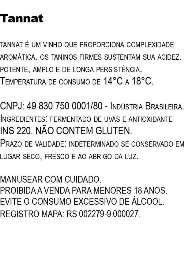 tannat é um vinho que proporciona complexidade aromática. os taninos firmes sustentam sua acidez. potente, amplo e de longa persistência.