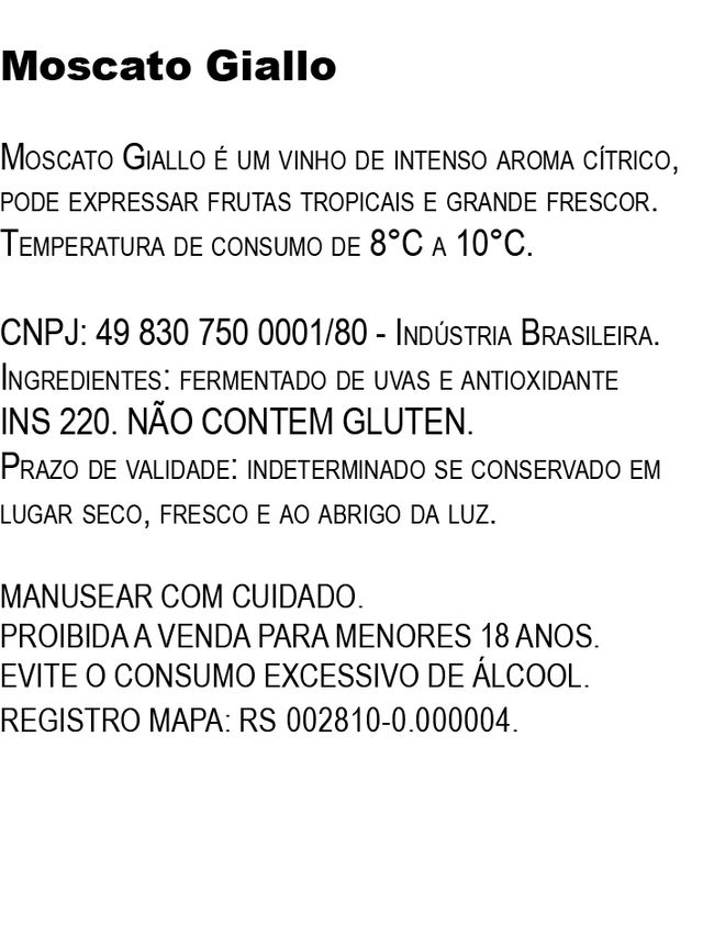 Moscato Giallo é um vinho de intenso aroma cítrico, pode expressar frutas tropicais e grande frescor.