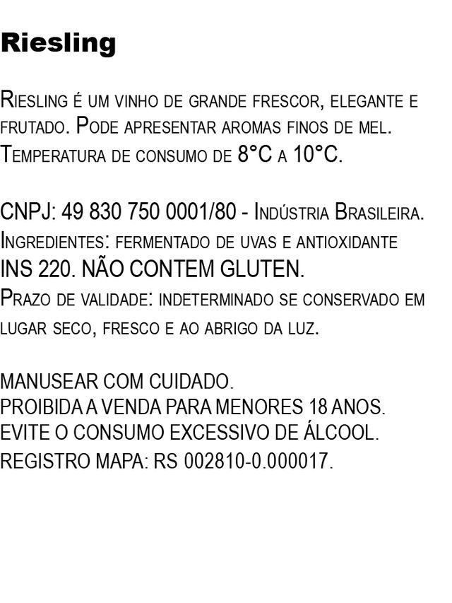 Riesling é um vinho de grande frescor, elegante e frutado. Pode apresentar aromas finos de mel.